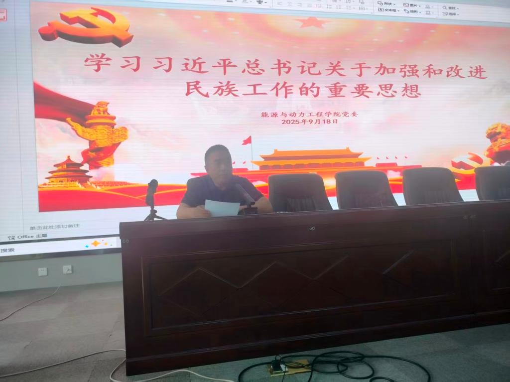 9月18日,能源与动力工程学院党委在金川校区能动大楼西107会议室召开民族团结进步活动月专题学习会,学院党委书记陈辉主持会议,全院103教师名参会。