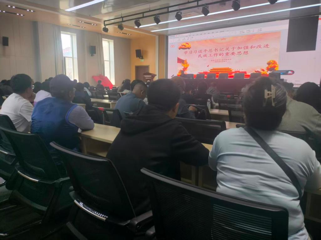 陈辉带领学院教师重温了习近平总书记关于加强和改进民族工作的重要思想的重要讲话精神、中央民族工作会议精神和全国民族团结进步表彰大会精神,对以“十二个必须”为核心要义的习近平总书记关于加强和改进民族工作的重要思想进行详细解读。认真梳理学院在铸牢中华民族共同体意识方面工作开展情况,并对民族团结进步活动月后期工作进行安排部署。